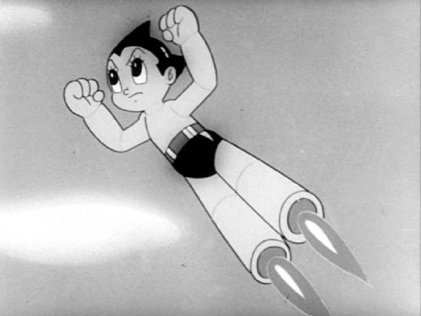 Aquí aparece en escena de nuevo Astro. En 1952, Osamu Tezuka creó la historia del pequeño niño robot con el título de Tetsuwan Atomu, que nosotros conocemos en Occidente como Astro Boy y en Japón también se conoce como Mighty Atom (la caricatura aparecería en 1963). En un principio, este androide reemplazaría a Tobio, el hijo del científico Doctor Tenma, que había muerto en un accidente, pero, por el desprecio de su creador, Tobio se convirtió en un huérfano, como los miles de huérfanos que dejó la guerra, según nos dice Bethany Harris en The Atomic Bomb and the Birth of Manga: Collective Memory in Post-WWII Japan. Ahora que vuelvo a ver los primeros capítulos de la serie animada de Astro Boy, caigo en la cuenta de sus referentes occidentales. En franca alusión a Pinocho, por ejemplo, luego del desprecio de su “padre”, Tobio es comprado por un cirquero que se lo lleva allí prácticamente como esclavo. Pero es en el circo donde Astro encontrará su camino de anómalo superhéroe, primero cuando Kathy —la otra humana del lugar— lo entrena para controlar su energía y le regala las emblemáticas botas rojas. Y después, cuando el Profesor Ochanomizu lo reconoce y lo recupera para tutelarlo. Astro usará en adelante su energía nuclear y sus piernas con dos poderosos cohetes que lo hacen volar para salvar al mundo de amenazas diversas.