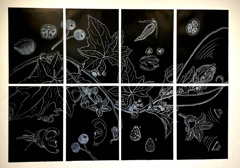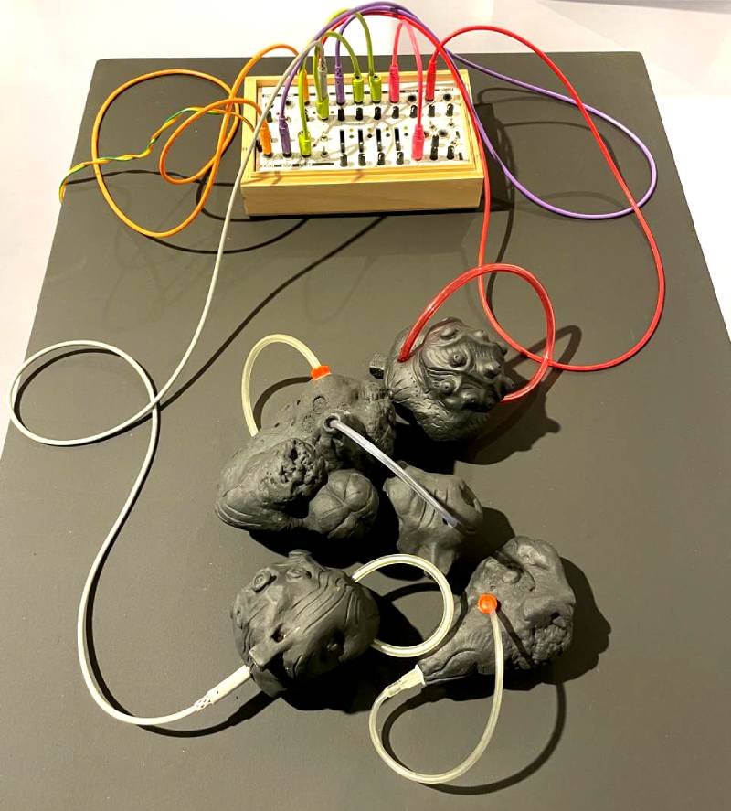 Así, Erosión y resonancia no es una exhibición para ser vista, sino para ser habitada. El público entra en un estado inestable donde la forma aún no se fija, donde la materia está en tránsito. Raíces que parecen cables, moldes que semejan órganos, prótesis visuales que recuerdan que la percepción es siempre una construcción técnica y simbólica.
