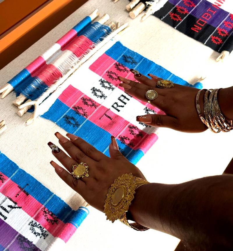 Entonces, la muxeidad viene por cuestiones de nacimiento, y lo artesanal del telar de cintura viene por parte heredada de mi familia materna. Es una cuestión híbrida en la que yo porto ambas culturas con mucha dignidad y orgullo. La muxeidad es un término que se utiliza en el Istmo de Tehuantepec Oaxaca, y somos identidades de la misma. Sin embargo, hoy sigue habiendo mucha discriminación hacia nosotras y por parte de la cuestión artesanal o de tejedores, tejedoras sexodiversas en los pueblos originarios, o al menos en la comunidad de la Costa Chica de Oaxaca. También hay una gran discriminación por el simple hecho de tejer y ser una persona sexodiversa, entonces aquí es donde mi lucha entra para mencionar que no tiene nada de malo el tejer y el ser una persona de la diversidad sexual. Sino que, al contrario, se sigue luchando y se preservan estos saberes compartiendo con otras personas para que toda nuestra riqueza cultural se siga mostrando al mundo a las personas.